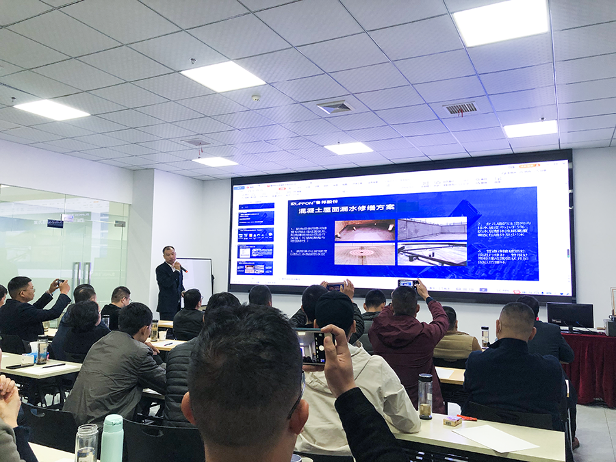 交流會上,公司防水修繕事業(yè)部總經理高艷生,研發(fā)總監(jiān)劉軼麟分別就防水修繕技術、產品知識及疑難問題進行了專業(yè)、詳實的分享,同時,參會的各位精英也就各自區(qū)域的業(yè)內問題進行了熱烈而又富有成效的討論。